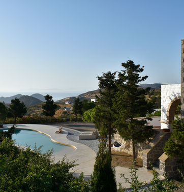 On the picturesque island of Patmos this detached luxury villa is overlooking at Chora and its unique Castle, from just a few meters away, whilst offering amazing sunset and sunrise views. Perfectly situated on the top of the hill, this bio-climatic villa offers naturally cool climate even at the hottest days, just by opening a window. At all floors of this exclusive accommodation one can enjoy the panoramic views of its magnificent location.